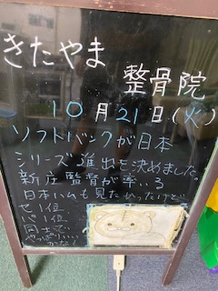 TOP ブログ一覧 10月21日(火)院長きたやま 10月21日(火)院長きたやま 投稿日:2025年10月21日 ソフトバンクが日本シリーズ進出を決めました。新庄監督が率いる日本ハムも見たかったけどセ1位パ1位同士でやっぱりいいかな! ブログカテゴリー 院からのお知らせ アーカイブ 2025年 (212) 2024年 (234) 2023年 (231)