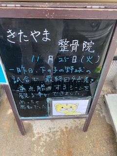 TOP ブログ一覧 11月25日(火)院長きたやま 11月25日(火)院長きたやま 投稿日:2025年11月30日 一昨日、下の子の野球の試合で、最終回4点差を逆転勝ちするシーンを観る事ができました。めっちゃ感動でした。 ブログカテゴリー 院からのお知らせ アーカイブ 2026年 (8) 2025年 (237) 2024年 (234) 2023年 (231)